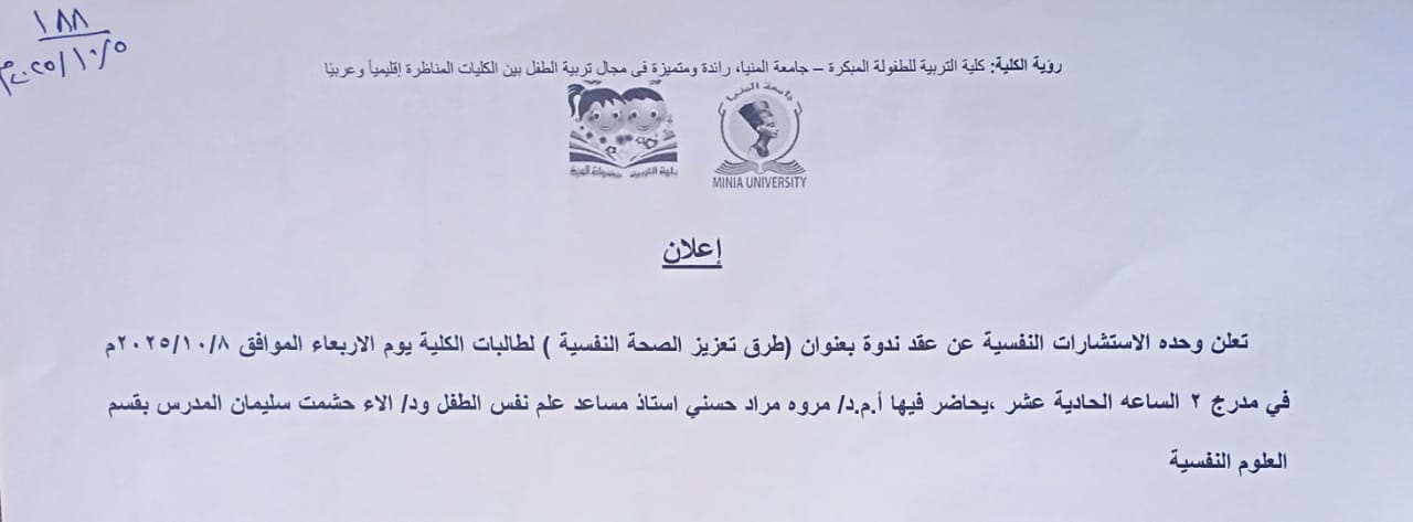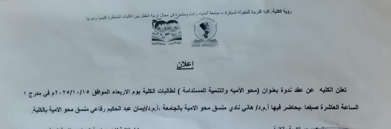 ادرس فى كلية التربية للطفولة المبكرة - جامعة المنيا