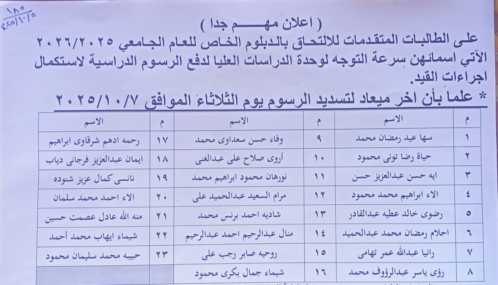 عدد الطلاب بالكلية