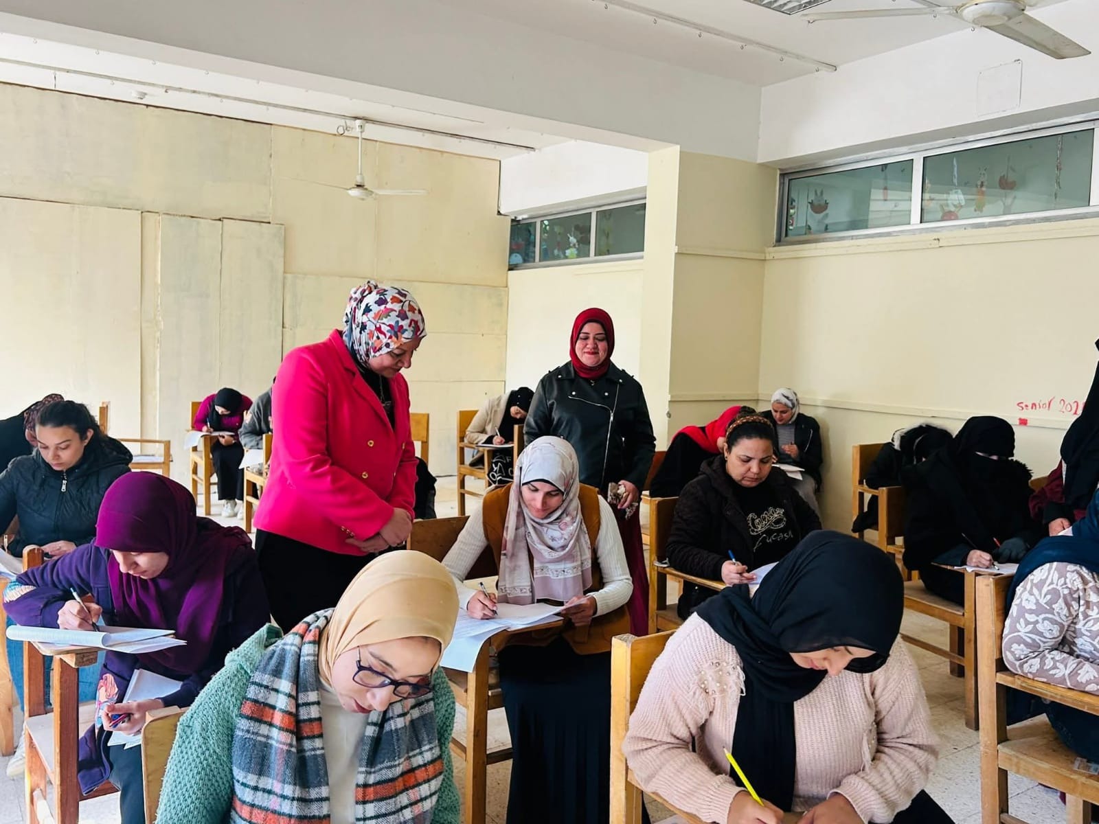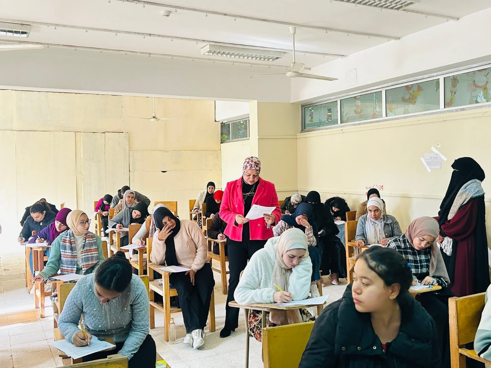 التربية للطفولة المبكرة تعلن بدء أولي أيام اختبارات مرحلة الدراسات العليا للفصل الدراسي الأول للعام الجامعي 2025/ 2026م. —————————————————————— بدأت كلية التربية الطفولة المبكرة اليوم الأحد الموافق 28 /12 /2025م أول ايام اختبارات الفصل الدراسي الأول لمرحلة الدراسات العليا وقامت سعاده الاستاذ الدكتور / وفاء رشاد راوي - عميد الكلية ووكيل الكلية لشئون الدراسات العليا والبحوث بتفقد اللجان الامتحانيه وذلك للاطمئنان علي سير العملية الامتحانية ، ومتابعة تهيئة الأجواء الملائمة للطالبات لآداء امتحاناتهم، وقد رافق سعادتها أ.د/ غادة فرغل جابر - وكيل الكلية لشئون الدراسات العليا والبحوث ود/ آية مصطفي فؤاد - عضو الكنترول كما قدمت سعادتها امنياتها للطالبات بالنجاح والتفوق.