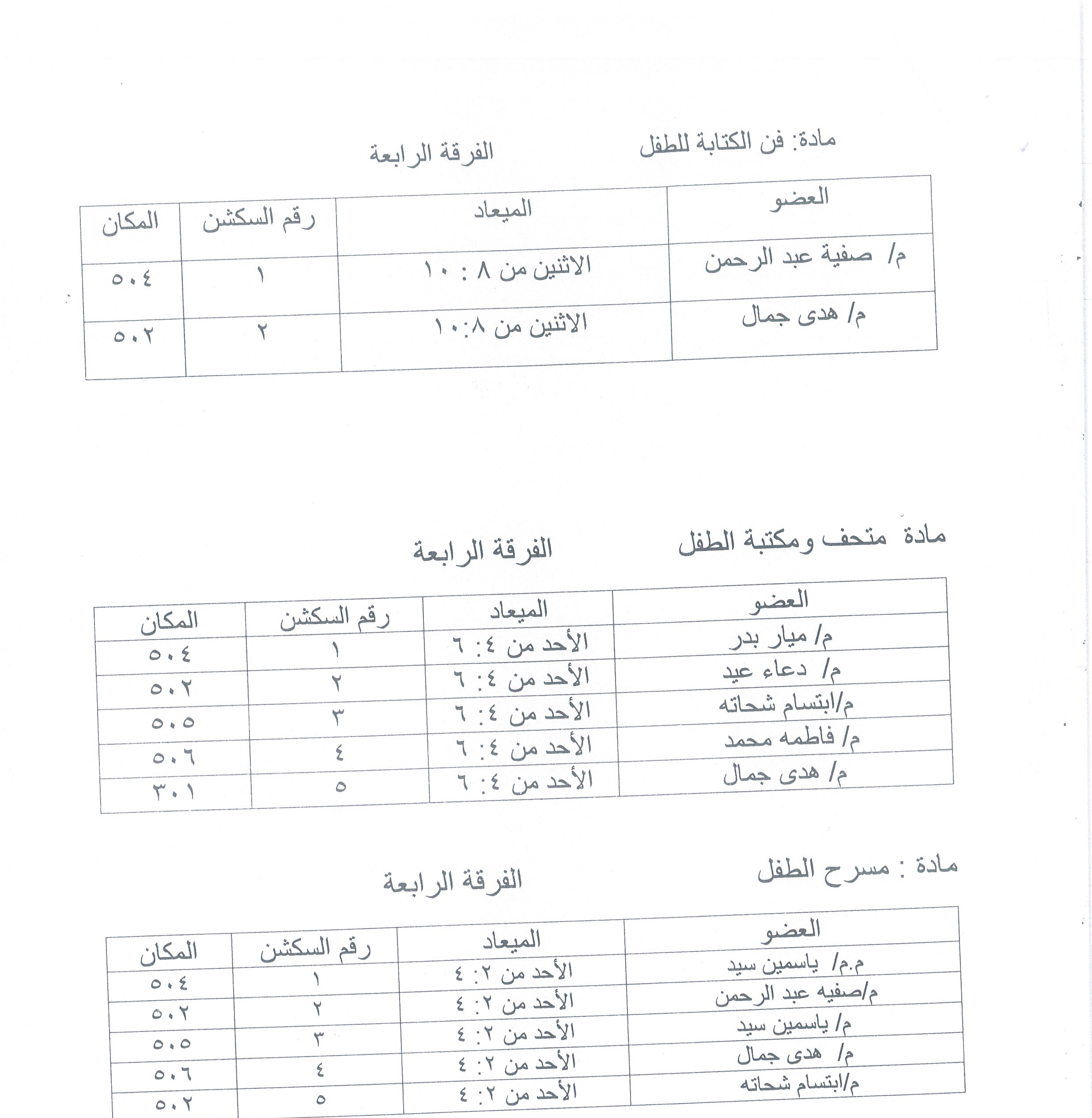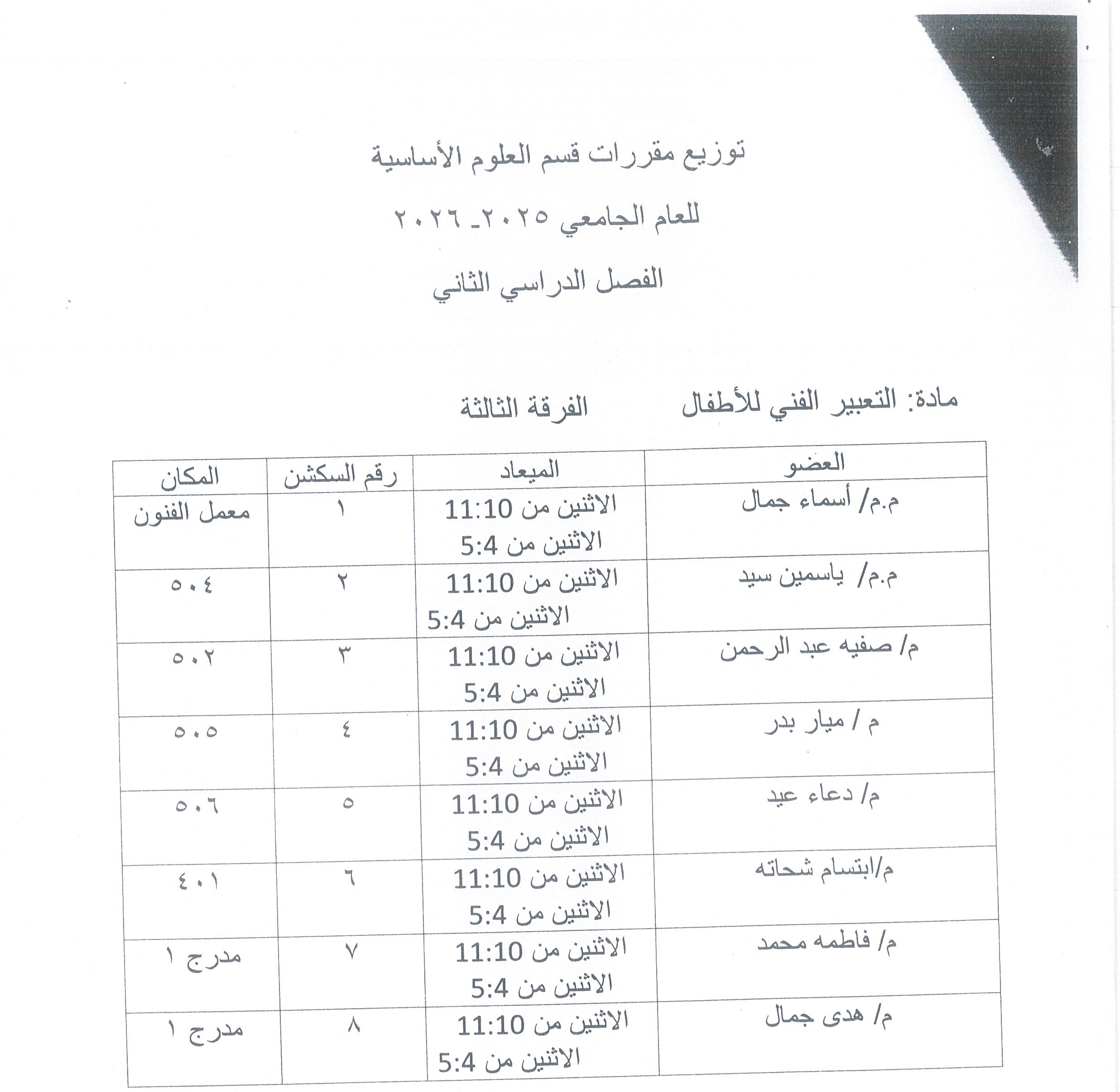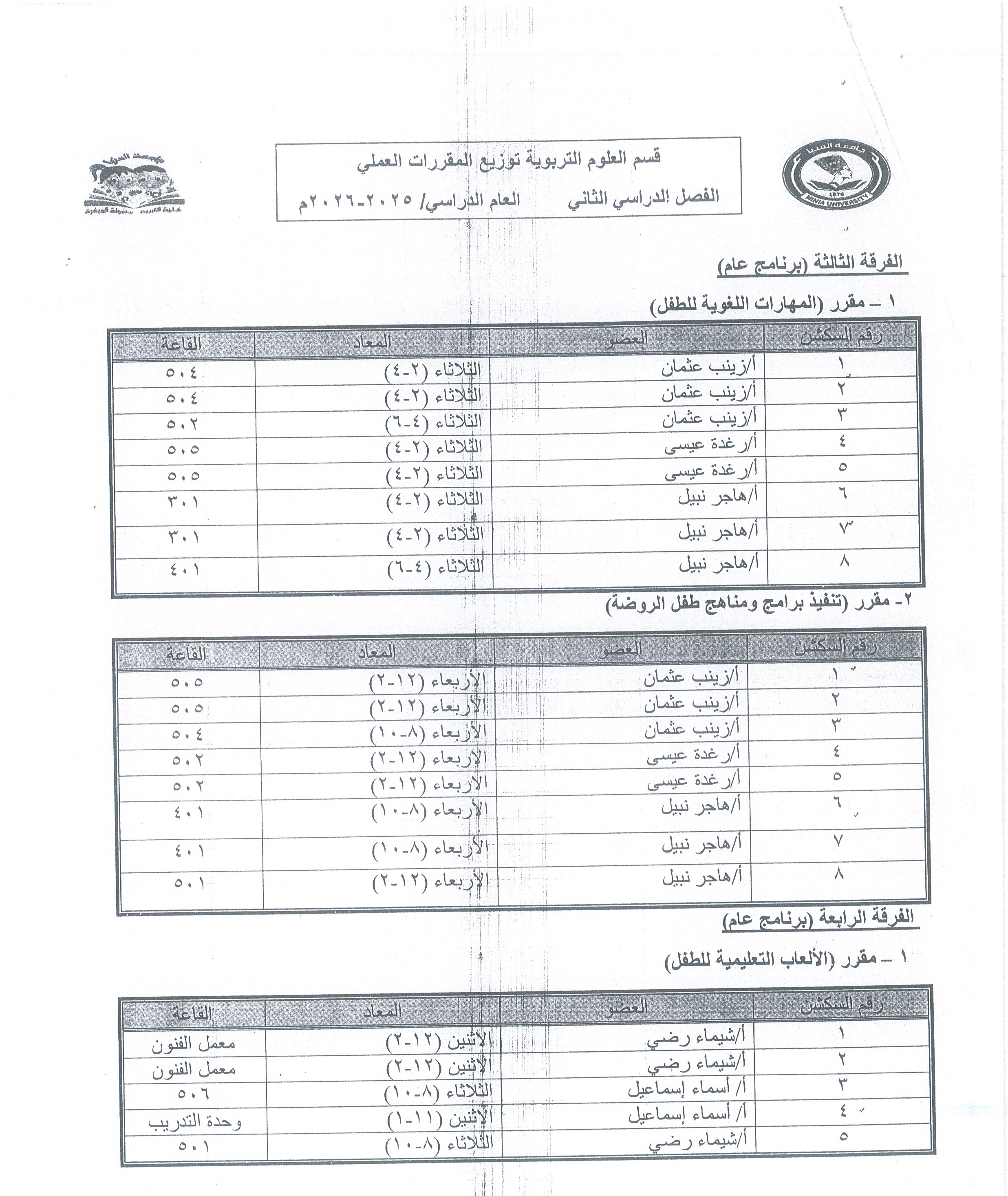 توزيع السكاشن الخاصة بالفرقة الثالثة والرابعة لنظام ساعات معتمدة للفصل الدراسى الثانى لعام جامعى 2026/2025م