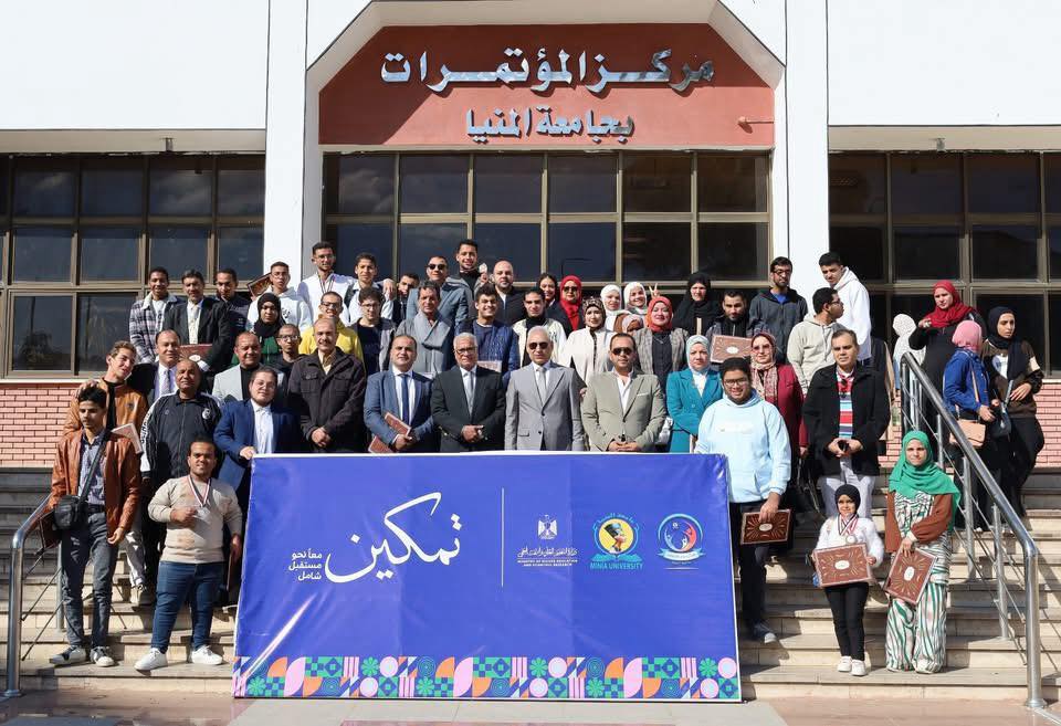 Le recteur de l'université de Minia rend hommage à la prof dr Wafaa Al-Rawi, doyenne de la faculté, en marge de la cérémonie de clôture de l'initiative « Autonomisation ».
