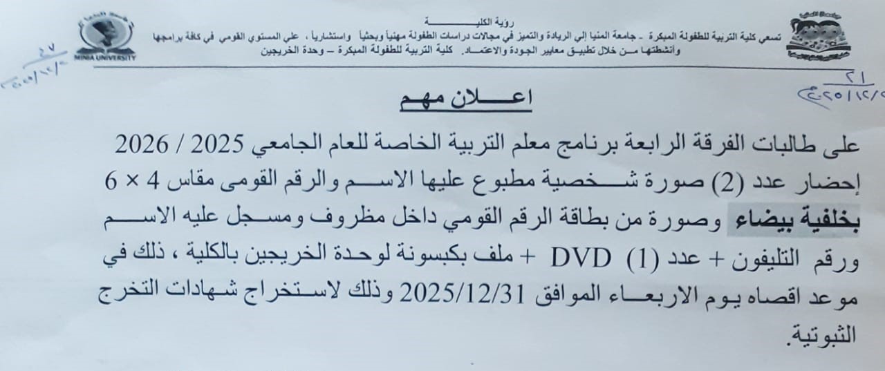 ادرس فى كلية التربية للطفولة المبكرة - جامعة المنيا
